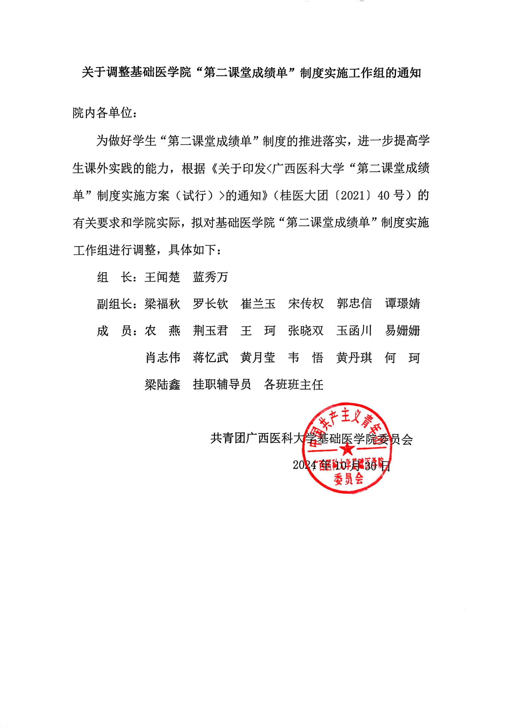 关于调整英国be365官网“第二课堂成绩单”制度实施工作组的通知