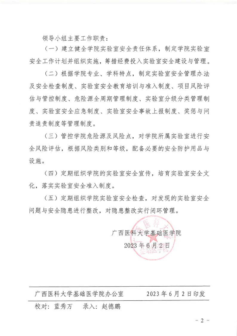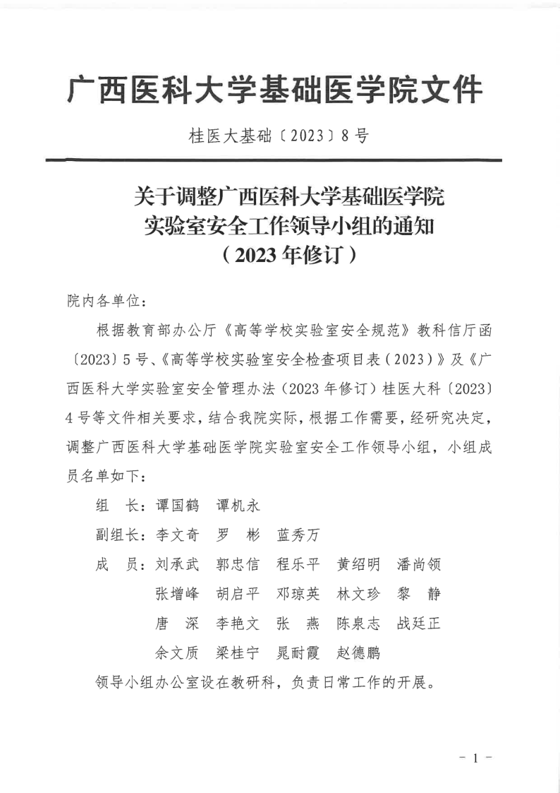 关于调整英国be365官网实验室安全工作领导小组的通知(2023年修订)
