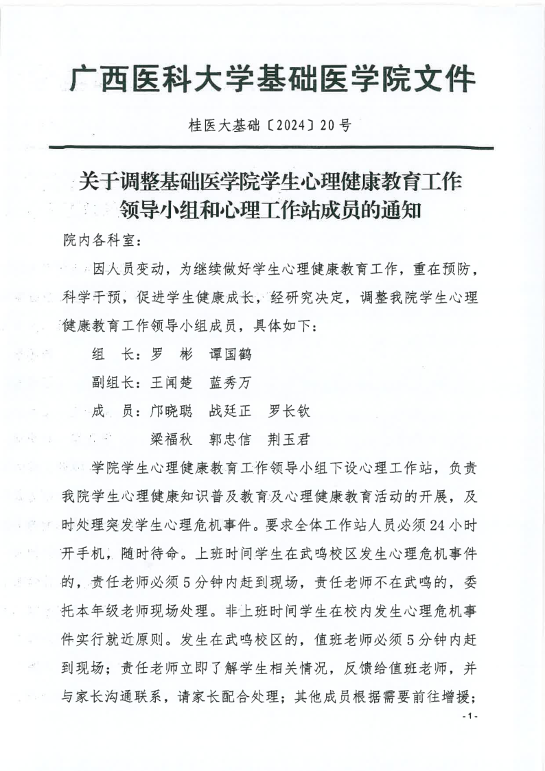 关于调整英国be365官网员工心理健康教育工作领导小组和心理工作站成员的通知