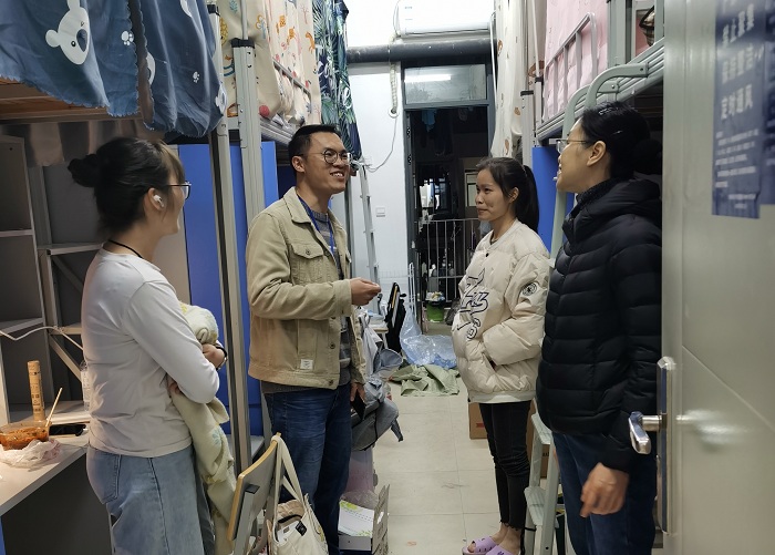 为保证轮转搬迁工作有序进行,3月1日下午,2020级全体辅导员召集员工干部召开轮转搬迁工作布置会,明确搬迁工作方案和落实工作细则。3月3日晚,年级办老师逐一走完全年级268间宿舍的同学,看望了解员工行李整理和宿舍卫生情况,并提醒同学们装车注意安全,妥善保管个人贵重物品。