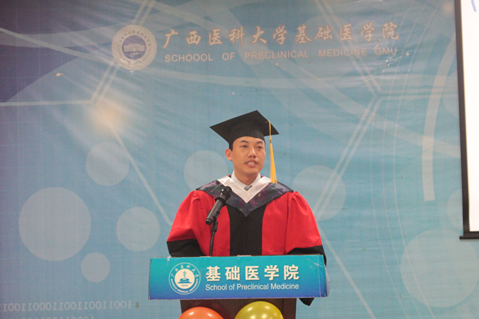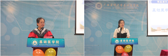研究生导师代表、国家级高层次人才计划获得者谢小薰教授、青年教师代表崔兰玉老师分别为毕业生送上寄语和祝福。2023届研究生毕业生代表李建涛同学和本科毕业生代表梁宝月同学依次上台发言,表达对母校、老师、父母、同学们的感恩之情,并决心秉承“厚德励志、博学弘医”的校训和“强基固本、敬德修业”的院训,踔厉奋发,勇毅前行,努力成为社会有用之才。