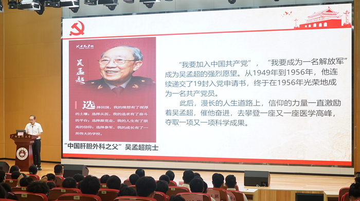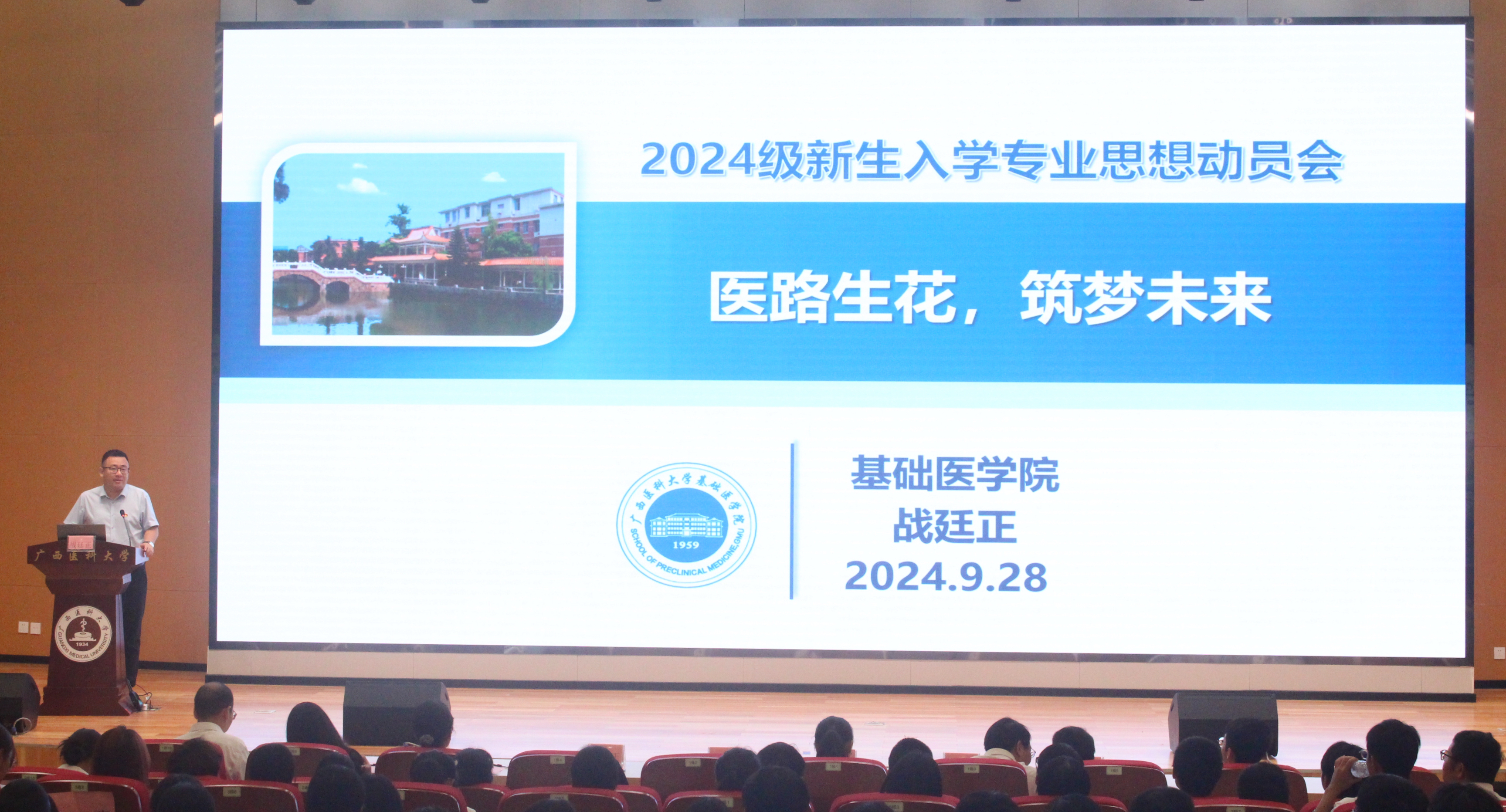 战廷正副经理作专业介绍。他从“医学是什么”“医学学什么”“医学怎么学”“老师的寄语”四个方面为同学们答疑解惑,结合医学前沿成果,加强新生对医学专业的了解与认同。